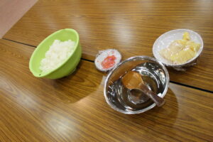 お米も炊きました!自分の好きな具材でおにぎりを作りました。