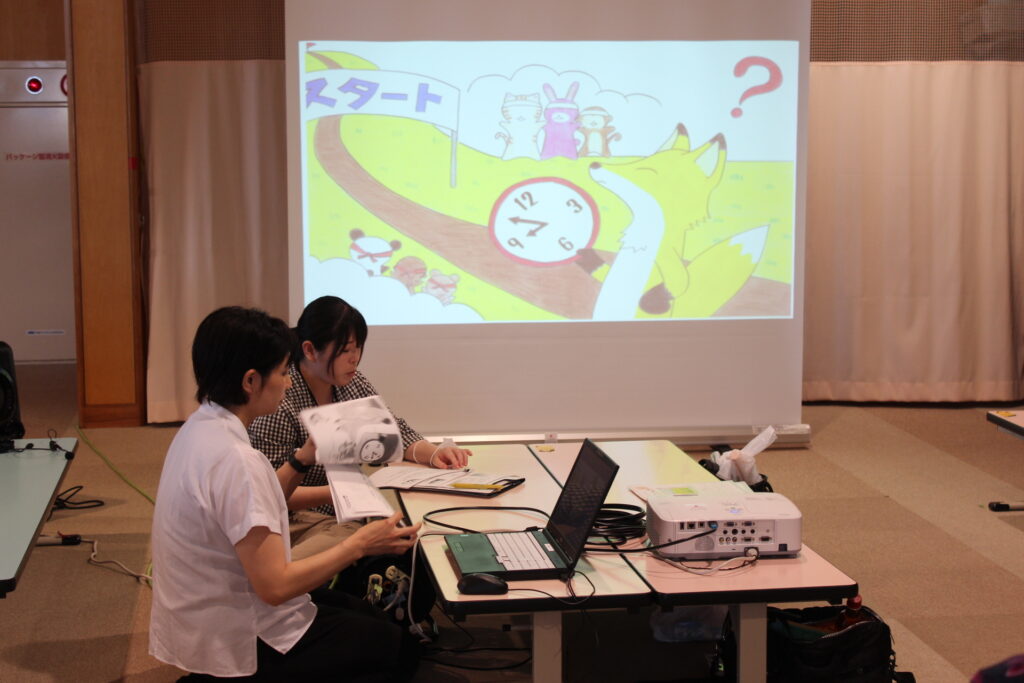 紙芝居の内容は「ウサギとカメの睡眠大作戦」ウサギとカメの競争前夜には睡眠に関わる悩みがあった?!