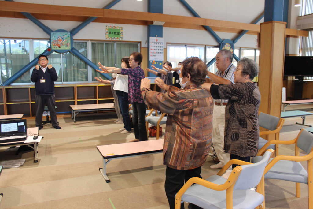 紙芝居のあとは、良い睡眠をとるために、ストレッチ運動や少し体に負荷がかかる体操、脳トレをして、良い睡眠をとる準備は万端です。