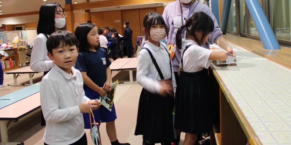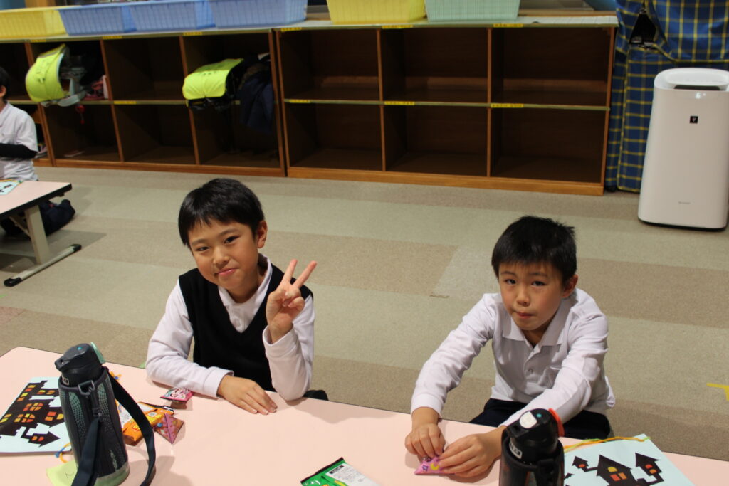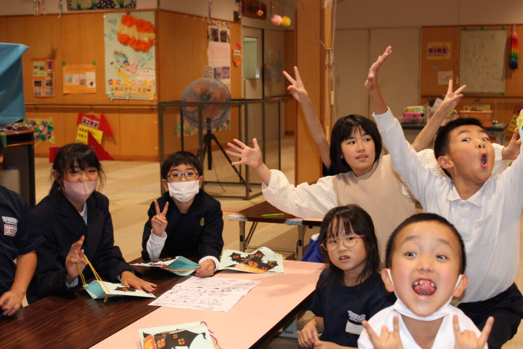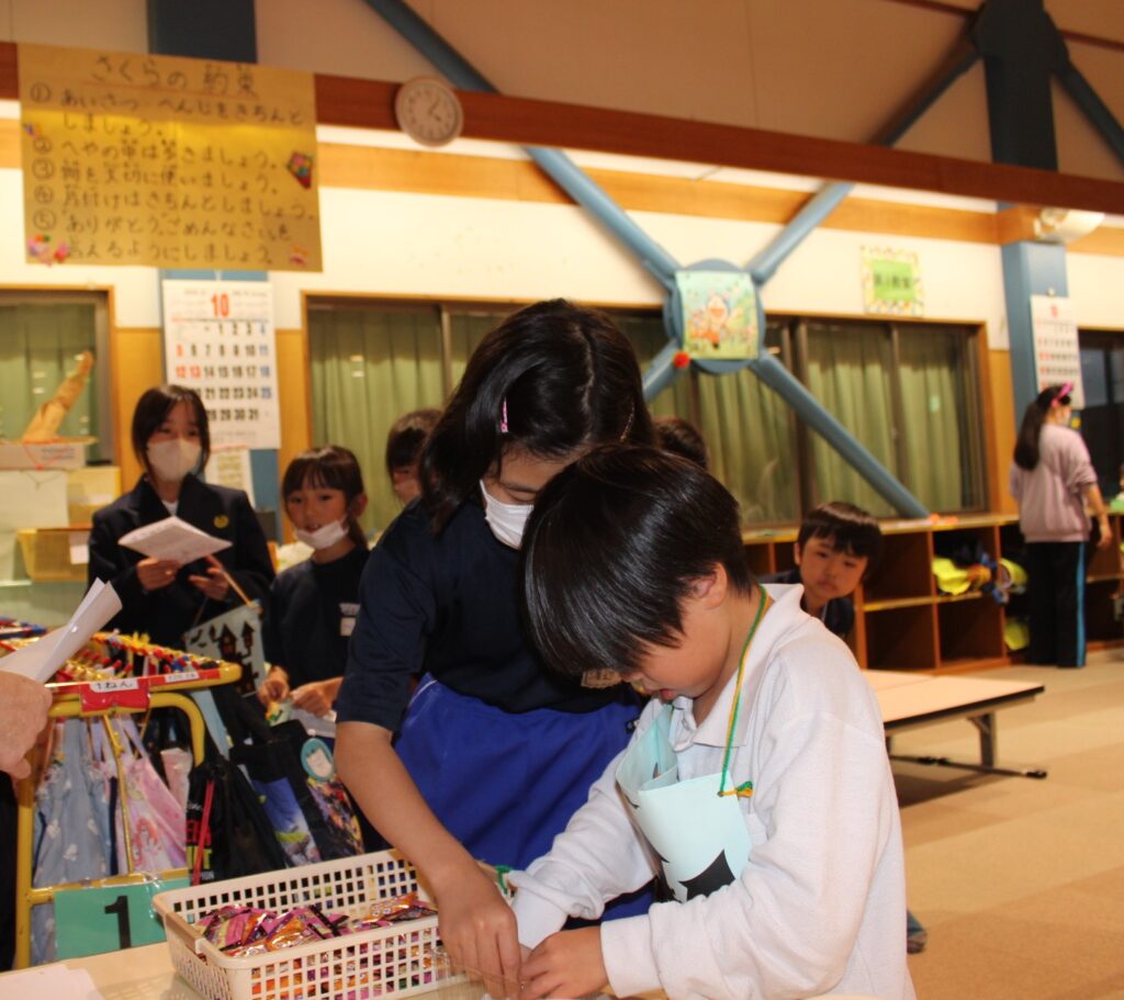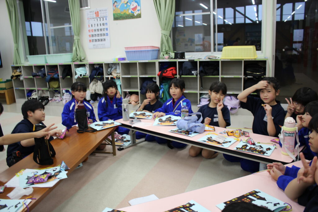 ゲーム中は、高学年が中心になってチームをまとめ、問題が正解した時にもらえるお菓子やシールを低学年が優先的にもらえるように声をかけていて、頼もしい場面も見られました。