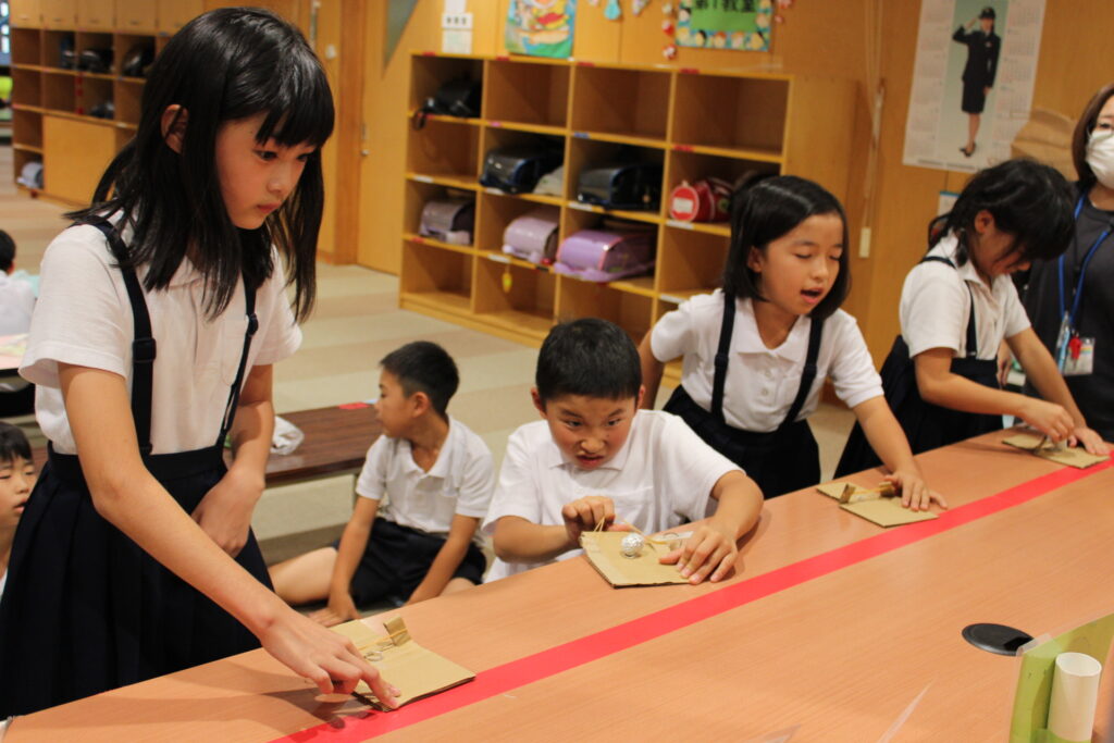 的当てでは、的に当たるようよく見て真剣に取り組んでいました。