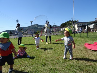 滑り台や、三輪車、ボール、散策と好きなことをして遊びます。子どもたちは戸外が大好きですね!