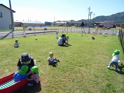 天気が良い日には、戸外に散歩に出かけたり、所庭遊びを楽しんだりしています(^^)