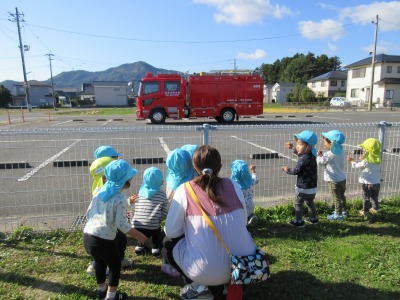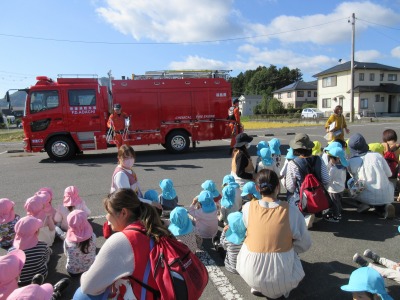 今回は南消防署の消防士の方と消防車が来てくれました。